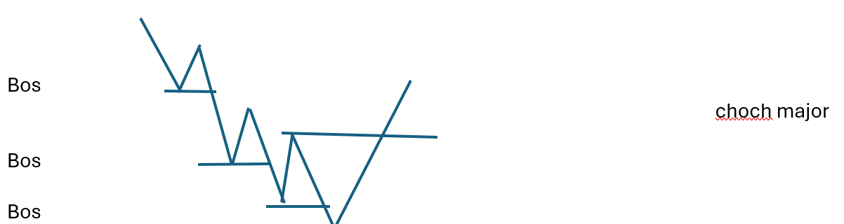 دو شکل روبرو تغییر ساختار از صعودی به نزولی را نشان می دهدو دو حالتی که گاها در بازار به وجود می آید.عکس نمودار بالا نیز صادق است برای نزول به صعود.