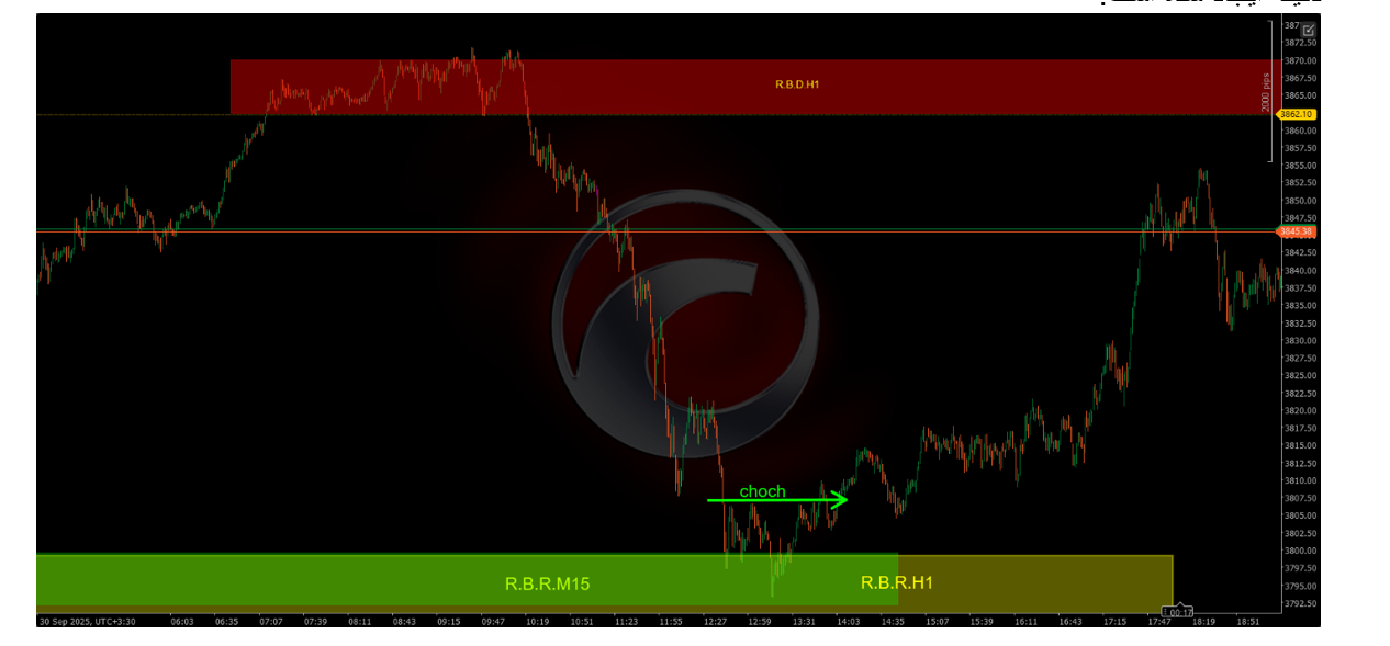 درشکل زیردو ناحیه ی منطبق بر هم از تایم یک ساعته و پانزده دقیقه داریم توجه کنید ناحیه ی تقاضا می باشد به همین جهت با تشکیل چوک در آن نزدیکی یا به خصوص در ناحیه سیگنال ورود خوبی می دهد.دقت کنید چوک در تایم یک دقیقه ایجاد شده است.